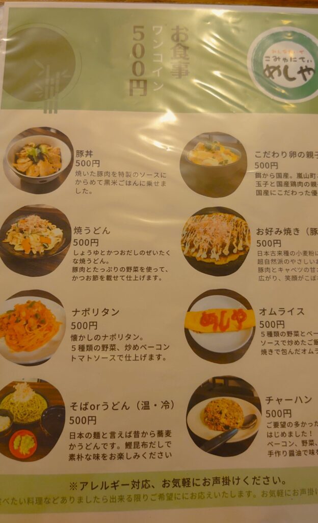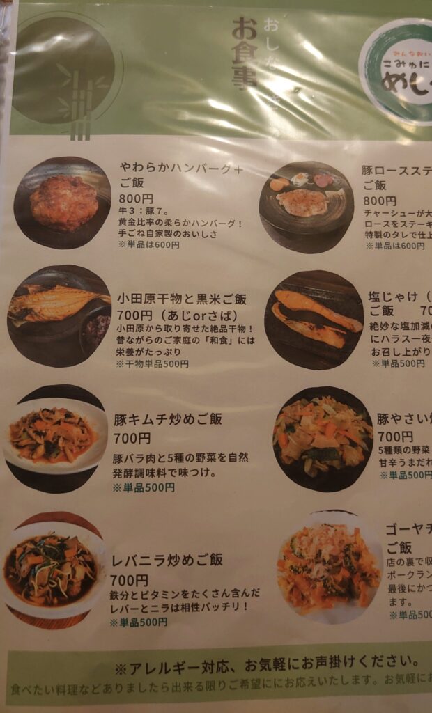 「 こみゅにてぃ めしや」のメニューは見た目こそシンプル。