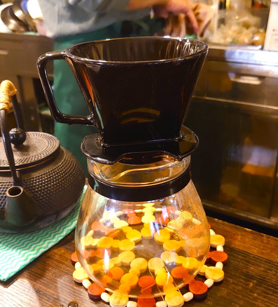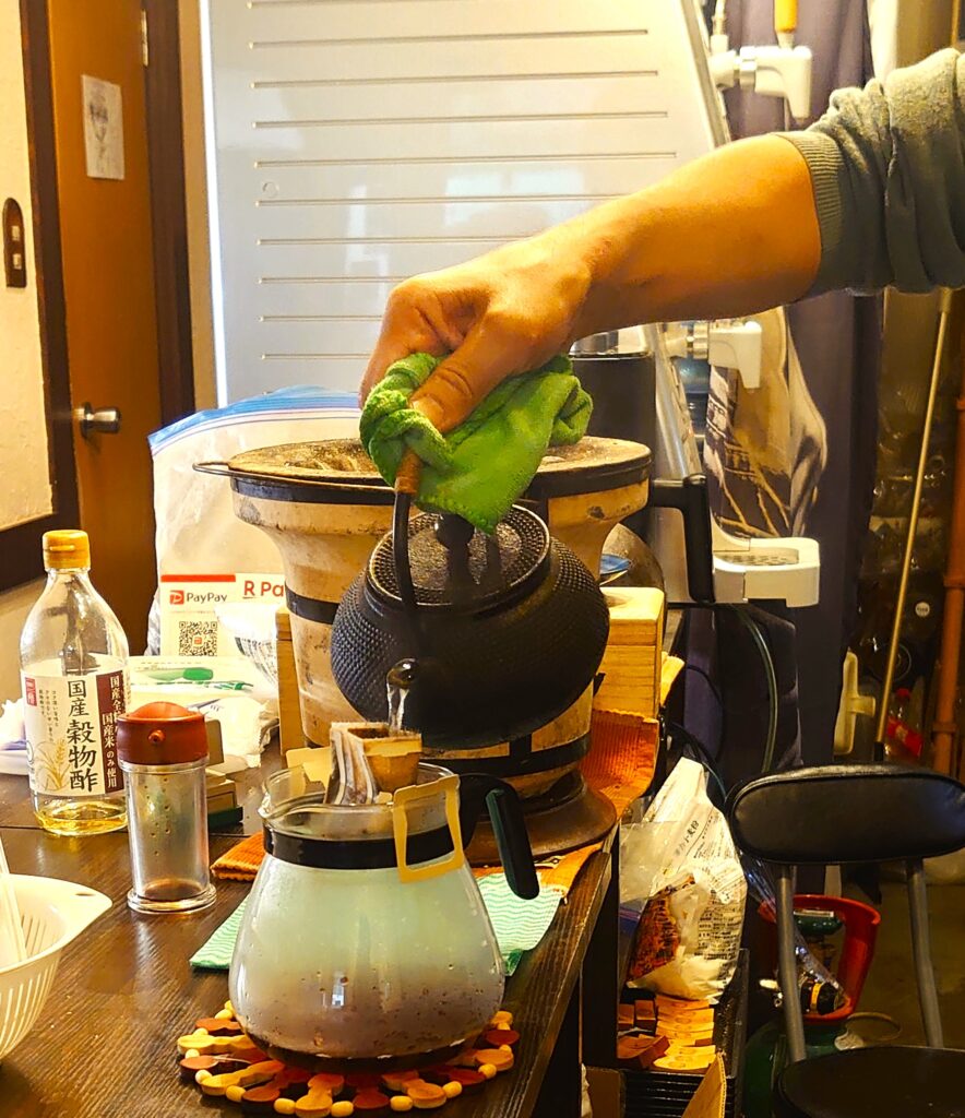 店主が「体にいいものを」と選んだのは、ドリップポッドではなく鉄瓶。