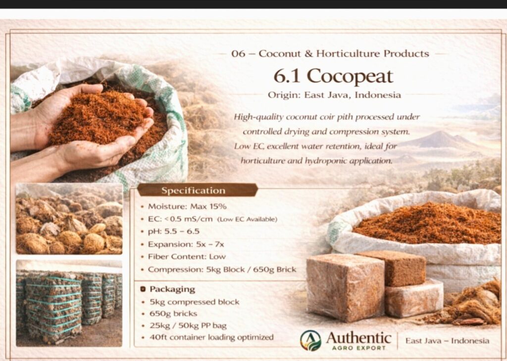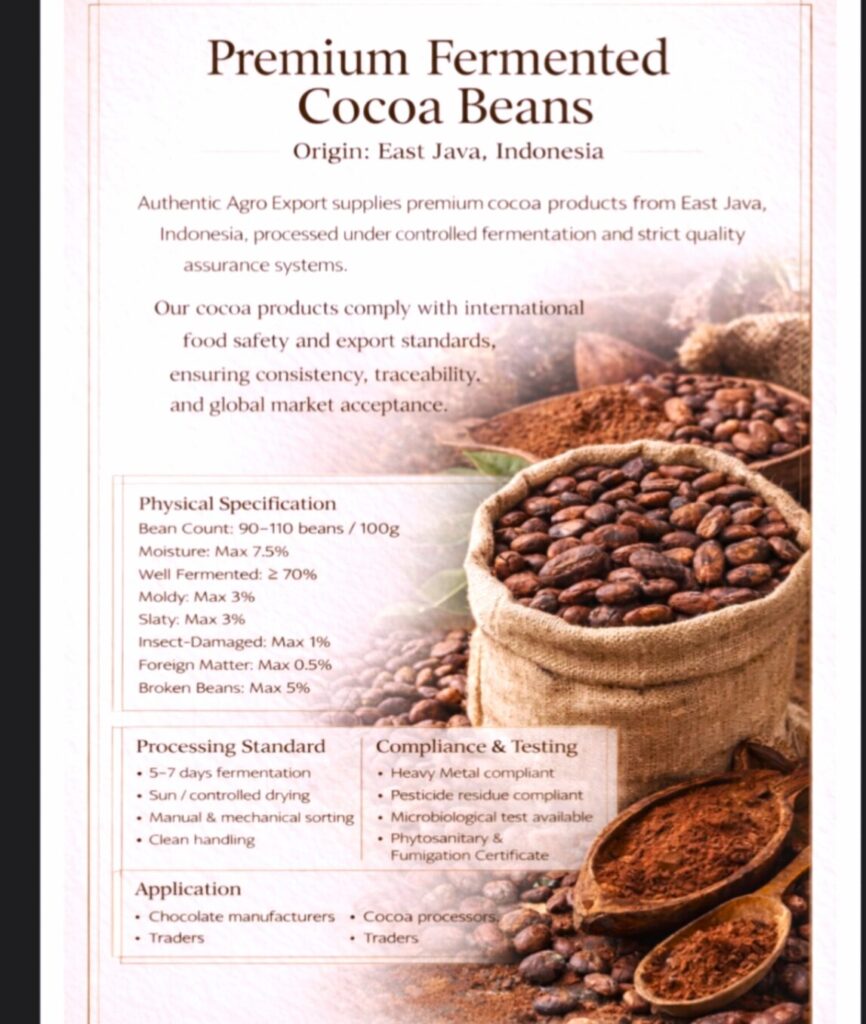 東ジャワ高地由来の原料、農家との直接連携、トレーサビリティ、品質保証、輸出対応・物流設計を一体で提示している点