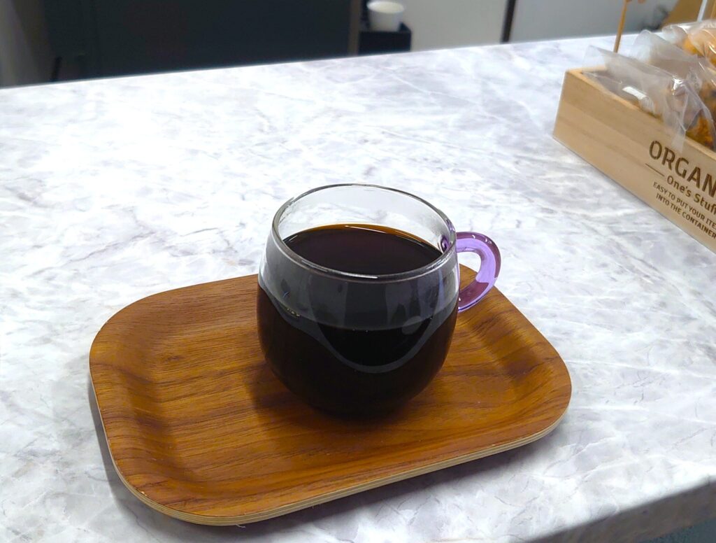 淹れたては、深煎りらしいボディ感が前に出る。