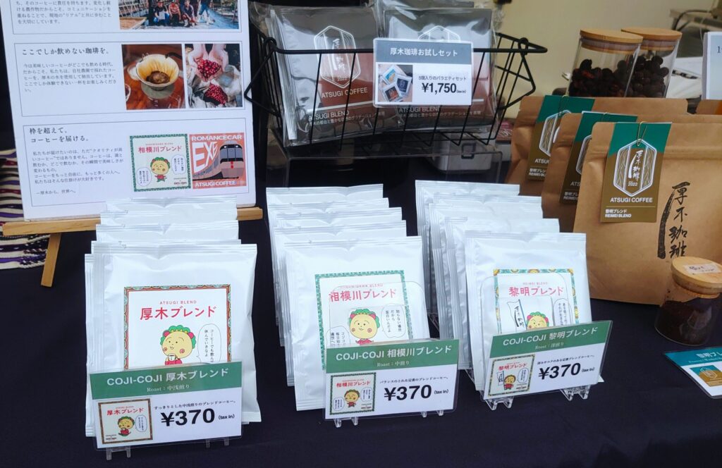 そこへ 厚木ブレンド/相模川ブレンド/黎明ブレンド/ATSUGI COFFEE FARM/期間限定 が配置されている。