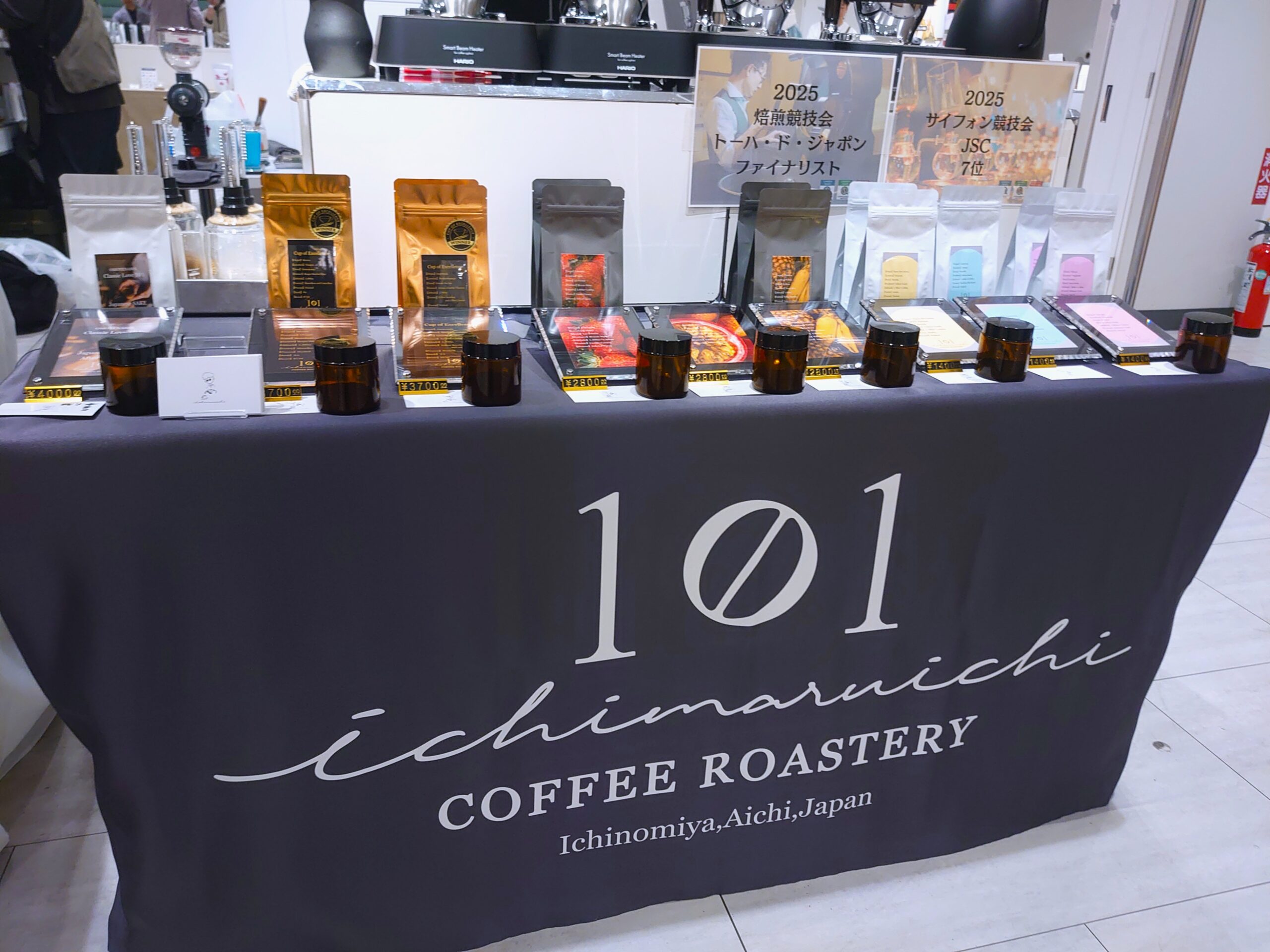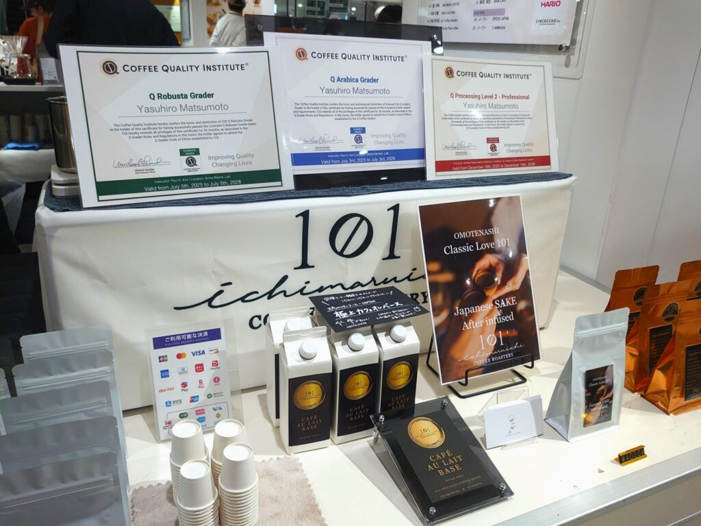 COFFEE ROASTERY 101のブースは、機材の整然さと、香りの野性が同居している。