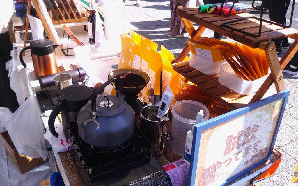 豆を売るだけのブースではなく、コーヒーを触って、匂いを移して、形に残す場所。