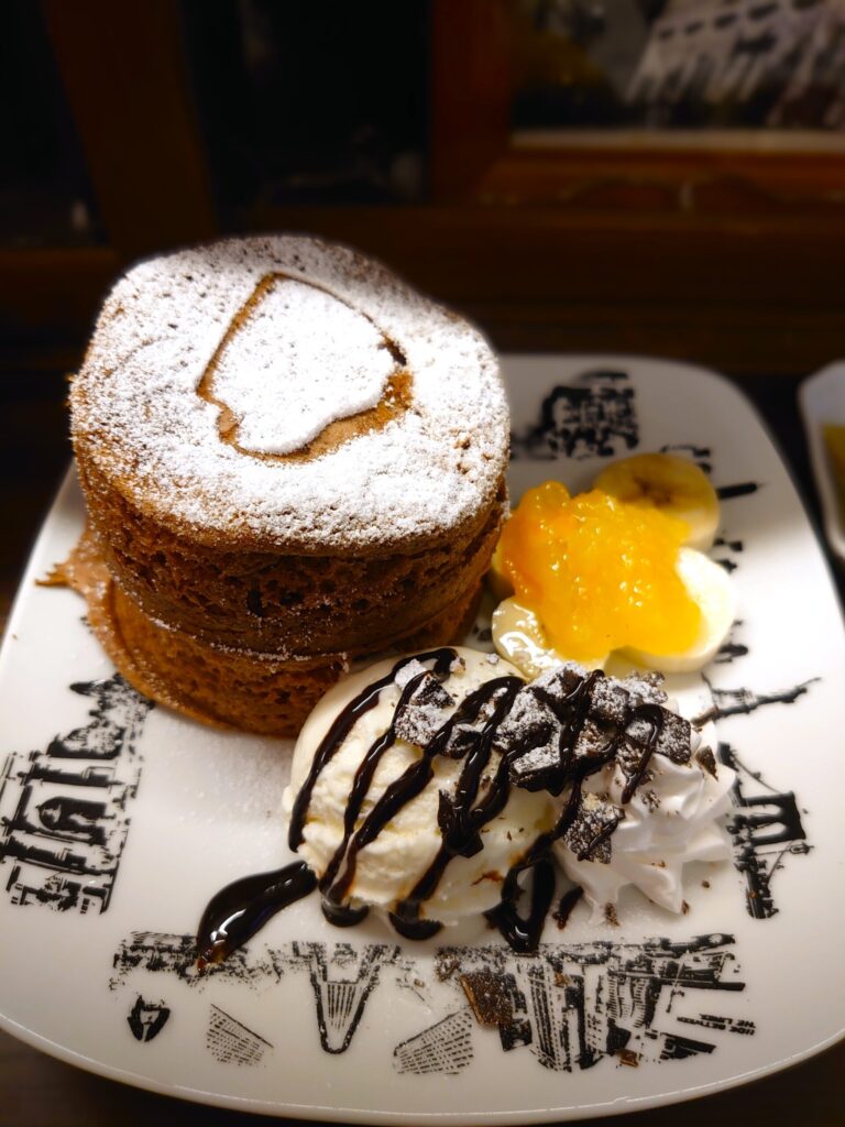 もっちりとしたパンケーキで米粉を混ぜ込んでいることをお聞きしました。マスターさんはどうしたら柔らかくしっとり感を出せるようになるのか日々作り方を考えてるそうです!