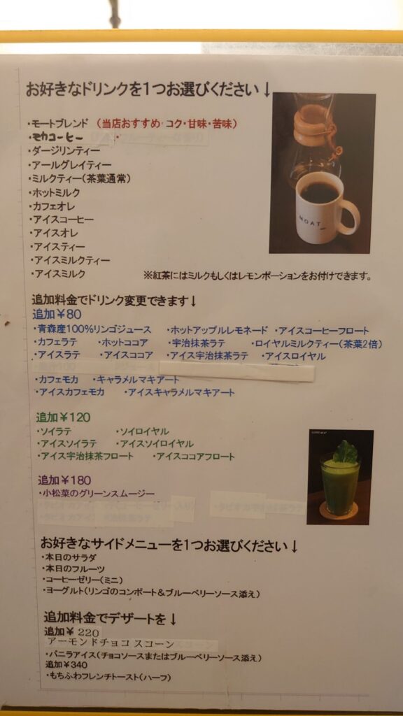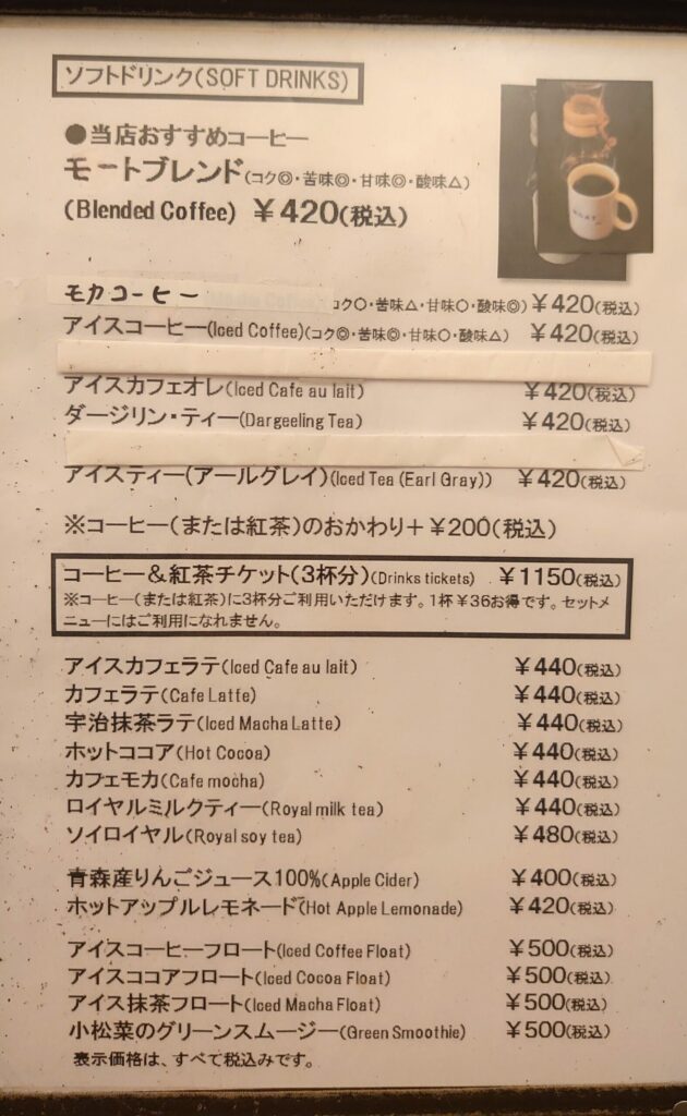 店名に込められた思いは、まず三文字くらいで覚えやすい名前から始まりました。次にマスターさんの名前から探してって「モート」になった感じでした。考えている時に「カナル」という考えもあったそうですが、他にも既にお店があった為この「モート」に決めたとのことです。