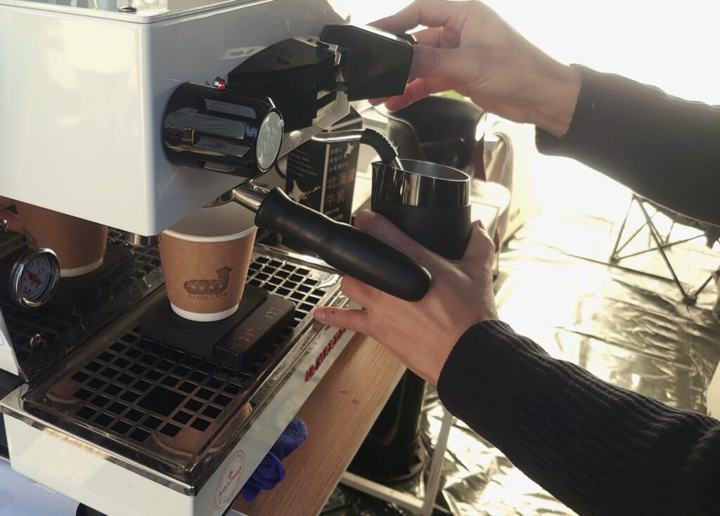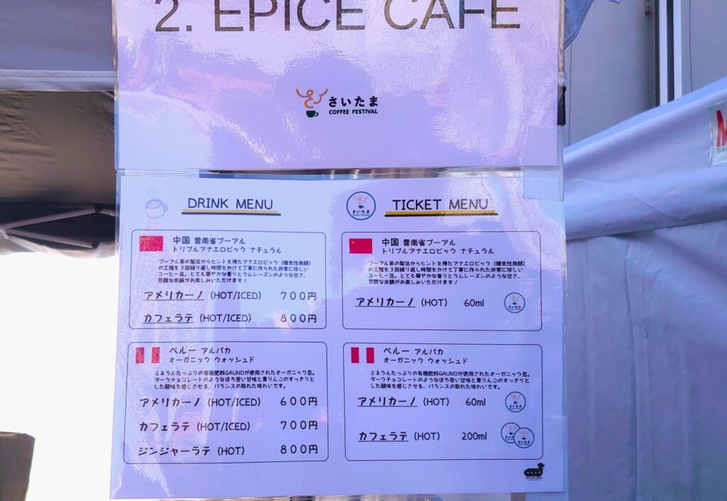 EPICE CAFEのブースは、派手に押し出すというより、“整っている”ほうで目が止まる。メニューの言葉が整理されていて、カップの運び方が静かで、動線が無理をしない。その時点で、飲む前から味の方向が見える。