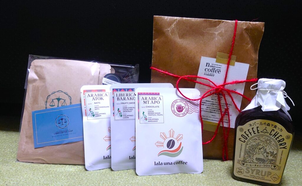 今回の写真には、ドリップバッグやブレンドの案内が写っていた。
