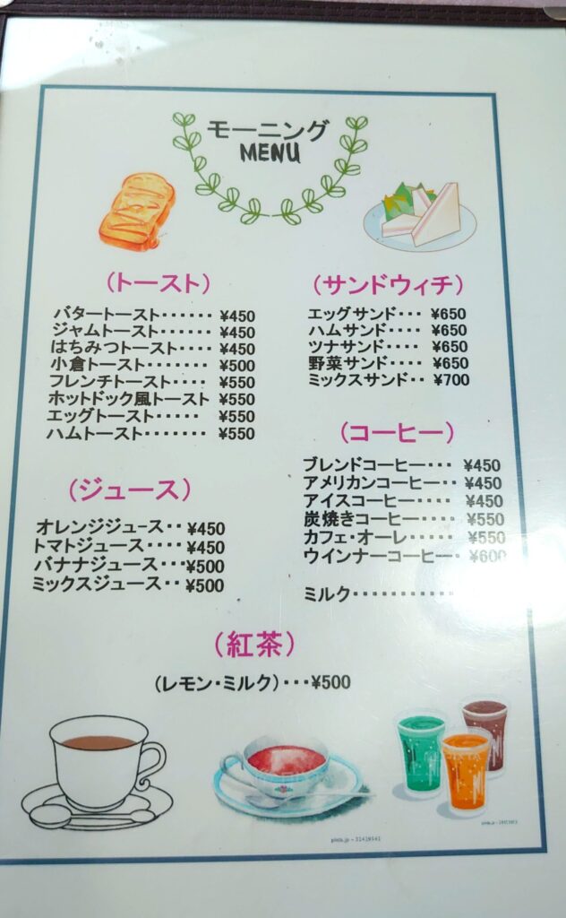 ・モーニングセットはトースト/サンドイッチ/ホットドッグ風トーストなど数種類