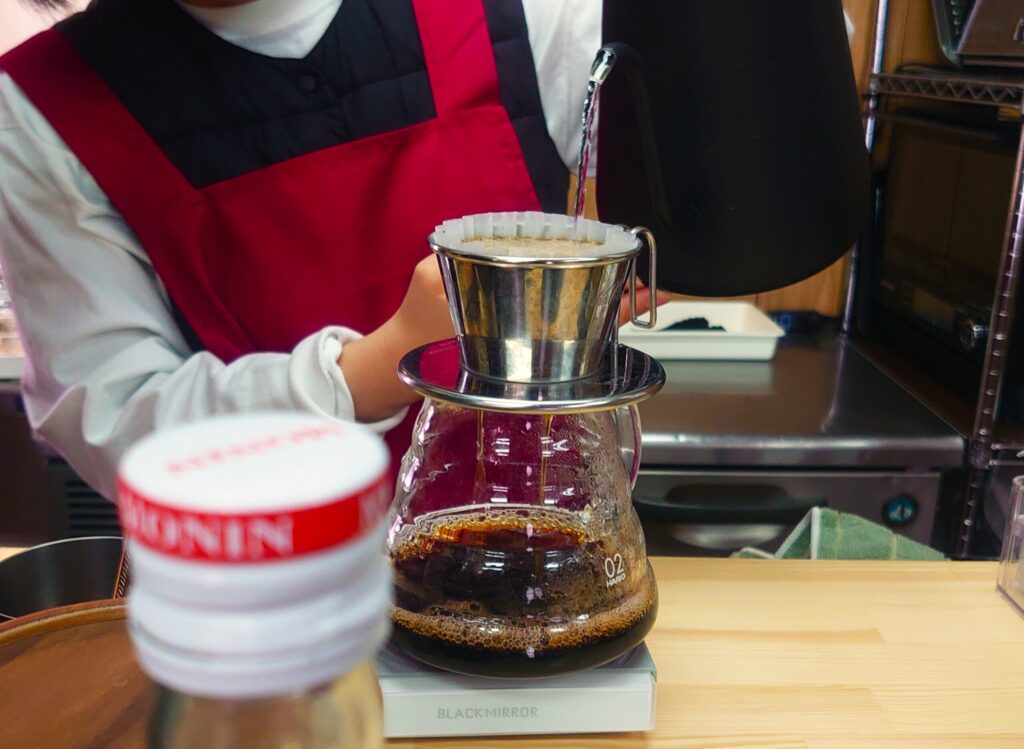 目の前で湯が注がれ、サーバーにコーヒーが落ちていく時間は、思ったよりも静かだ。