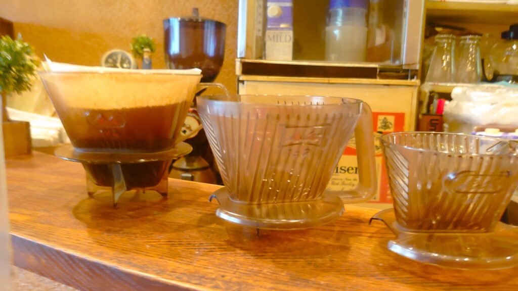 また、使用されている道具はずっとメリタ式のドリップコーヒーであることを教わりました。始めた当初の最新であった抽出スタイルがこのメリタ式であっため今も変わらず使い続けています。また、使用してとても美味しく感じたと話されていました。
