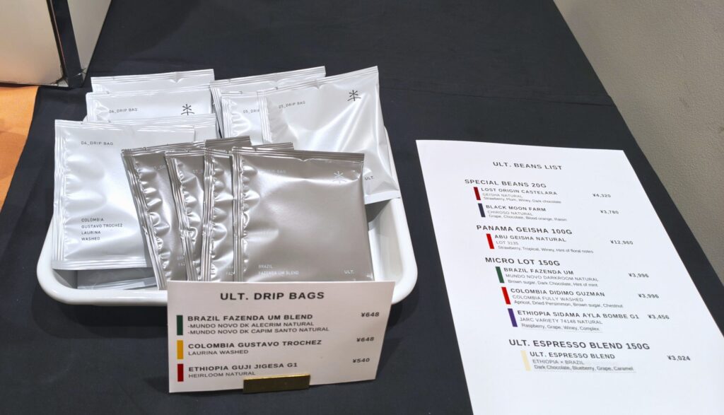 ブースには ULT. BEANS LIST があり、レンジが一目で分かる。
