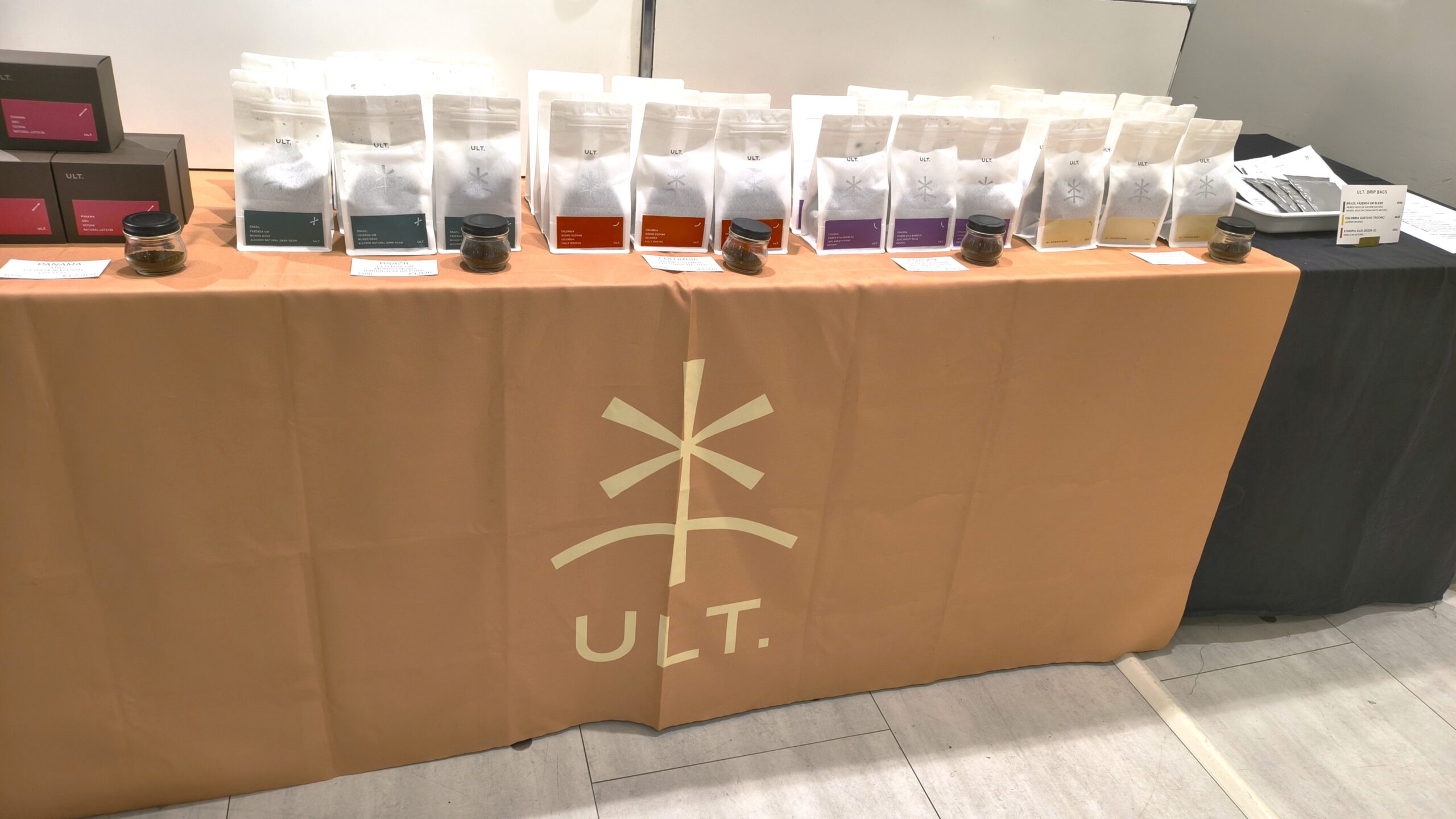 その中で、ULT. のブースだけが、音を吸う。白い袋が並び、色帯が静かに役割を分け、