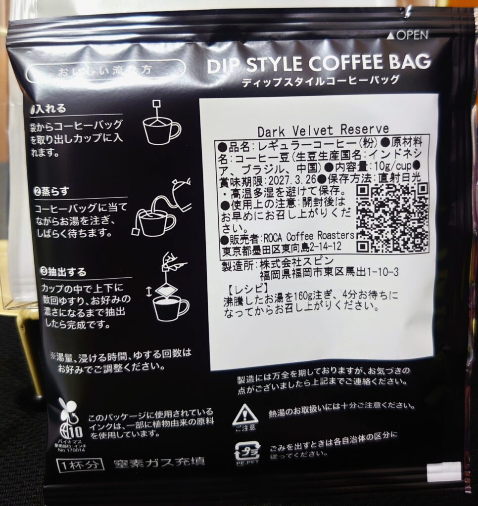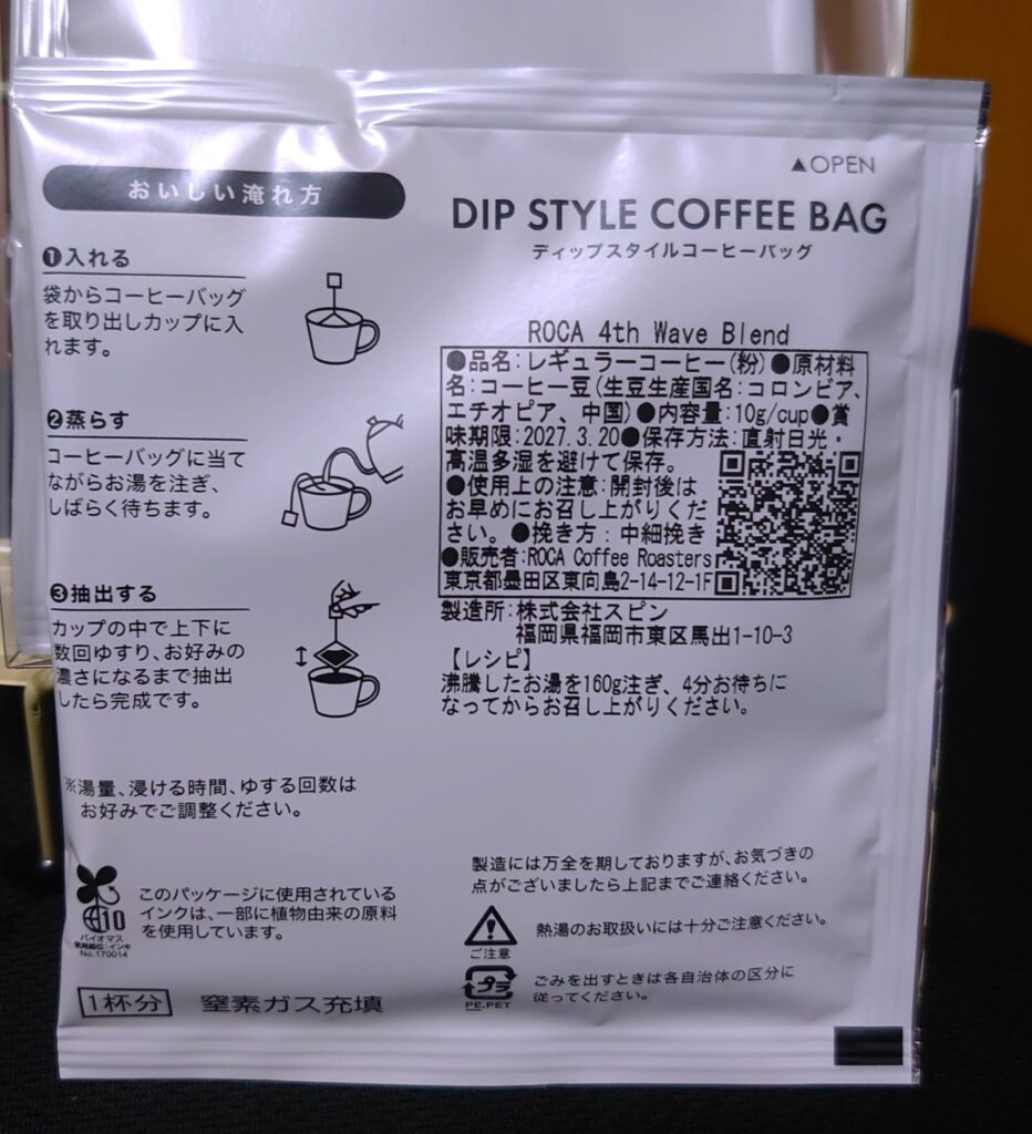 持ち帰ったのは、ディップスタイルのコーヒーバッグが二種類。