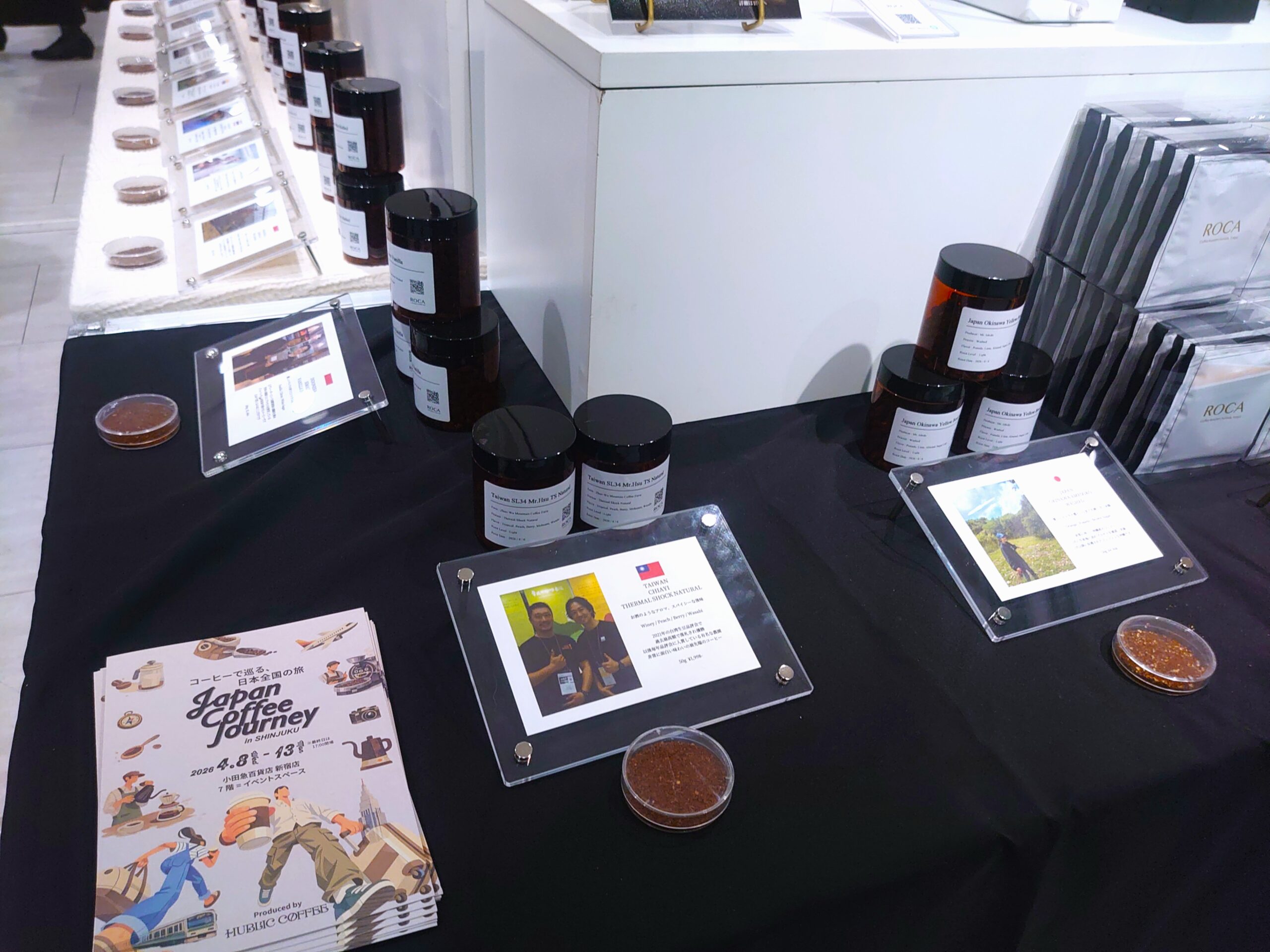 ブースには透明なジャーが並び、カードの横に粉が小皿で置かれていた。