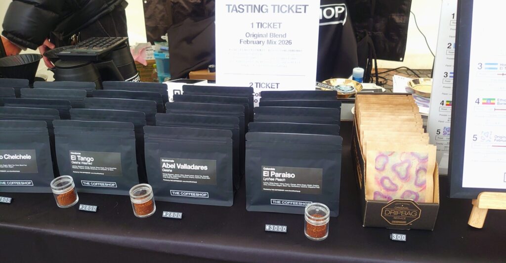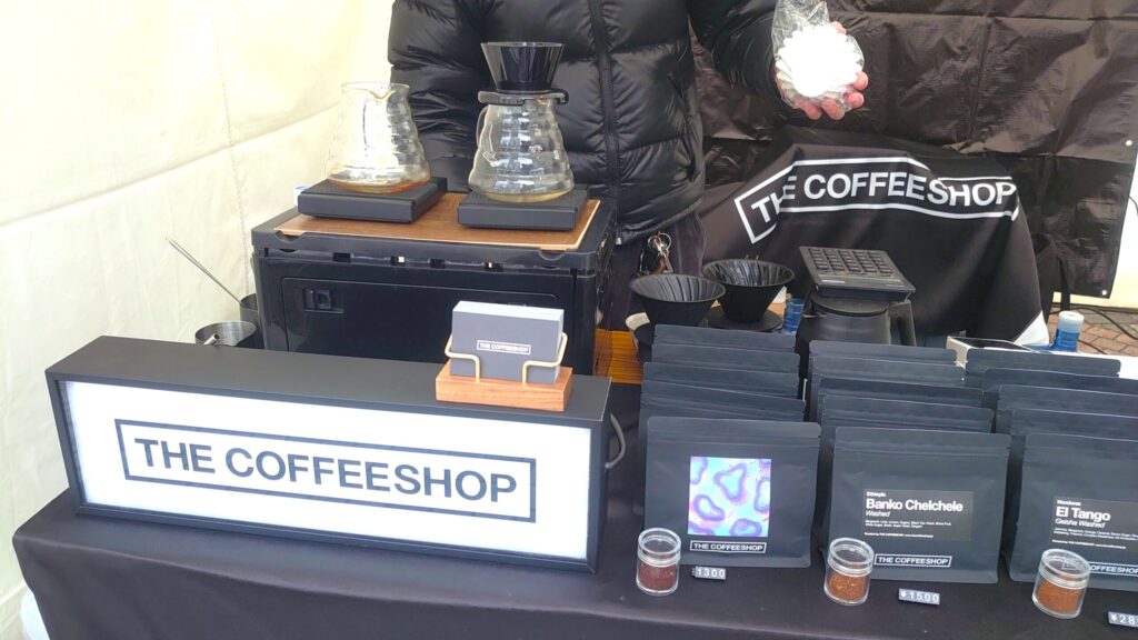 正面に大きく掲げられた THE COFFEESHOP のロゴが、会場のざわめきの中で“静かな看板”になっていた。