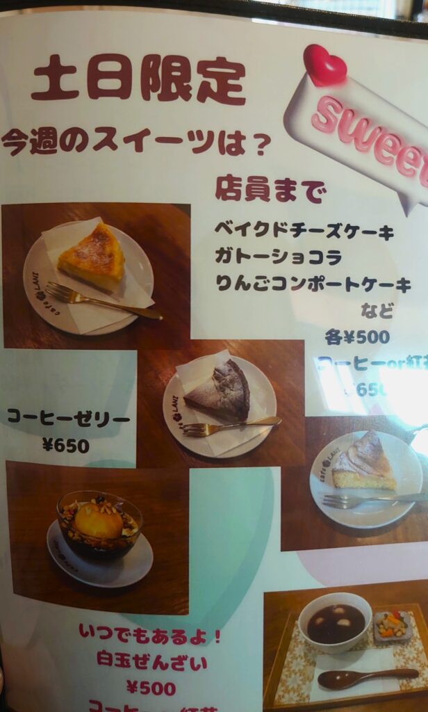 • (土日限定)ケーキ系 × コーヒー:甘さは強くても、店の空気が軽いので重くなりにくい。