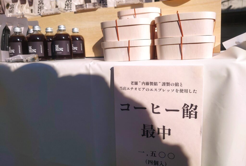 ブースには、老舗の製餡所とコラボしたコーヒー餡の最中も並んで