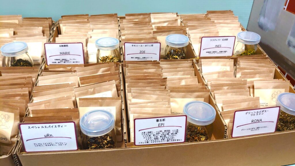 uRnさんのお茶すべてブレンドティーとなっています。理由としては、お客様の気分によってその時のものが提供できるようにするため。また海外ではお茶を香水のように自身で香りを選択できることを皆様に知っていただきたいこと。
